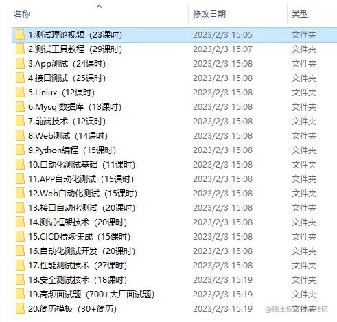最后:下方这份完整的【软件测试】视频学习教程已经整理上传完成,朋友们如果需要可以自行免费领取 【保证100%免费】