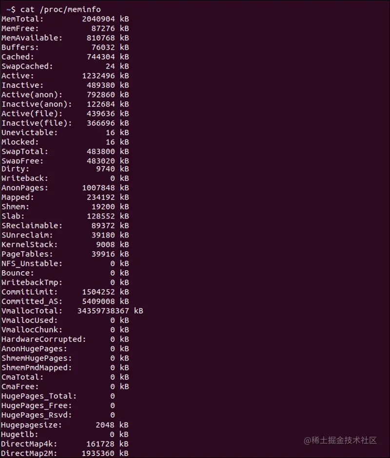 虚拟文件 /proc/meminfo