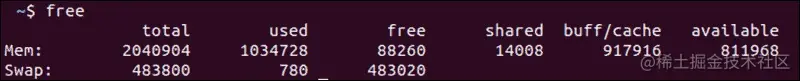 和读取 /proc/meminfo 文件相比,free 命令提供的信息较为精简,但是它更容易理解。