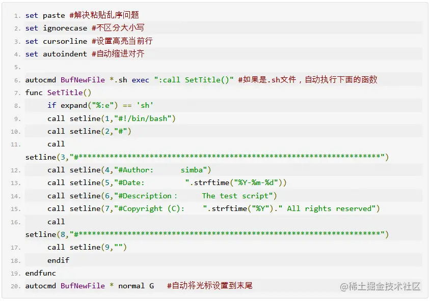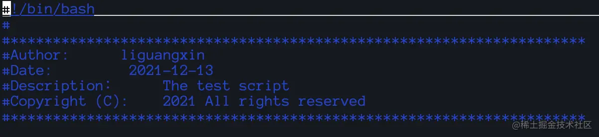 下面给大家分享一个shell脚本的模板文件,把它拷贝到用户的根目录下并命名成 .vimrc 名称,这样我们以后再次打开以 .sh结尾的文件时就会成自动生成一些注释信息,只要稍稍修改一下即可如图所示: