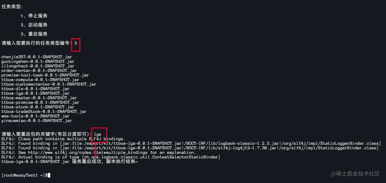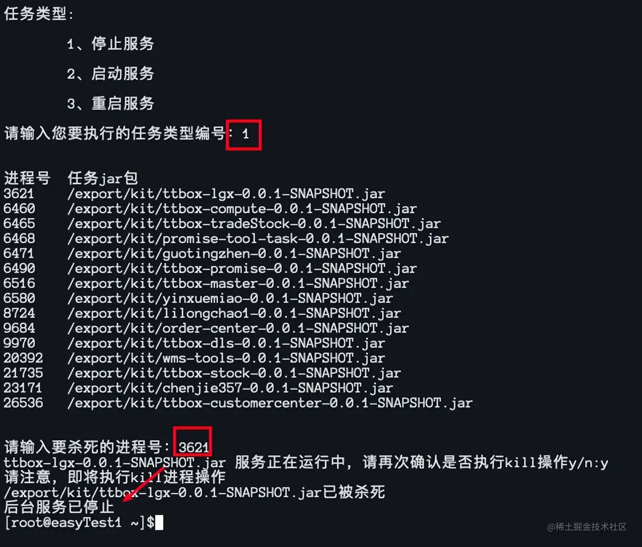 实现原理就是,将停止服务和启动服务需要执行的命令写进脚本,通过shell交互来实现,外加一些必要的判断逻辑,比如: