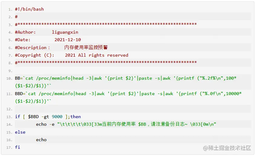 如下脚本实现了,当服务器内存使用率超过90%时,提示保存日志操作,如果未超过90%,则不作任何处理;