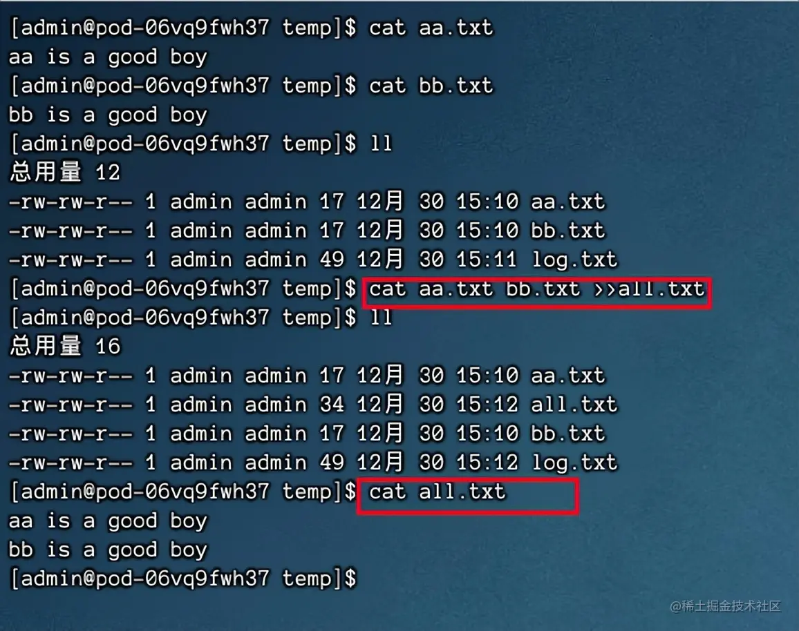 默认地,cat命令可以直接接收多个参数,这样,通过重定向可以很方便地合并文件: