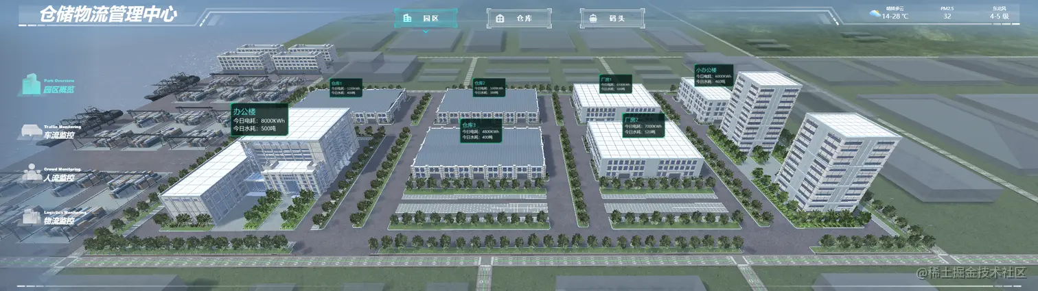 FineVis是国内领先的打造智慧升级的大屏软件,它可以将智慧城市的数据用大屏展现,结合3D城市模型和2D动态图标,实时清晰和准确的传递重要数据,以便领导参与决策。它的主要优势在于3D场景搭建、3D城市建模、数据快速接入,无需开发即可快速完成数字孪生场景搭建。
