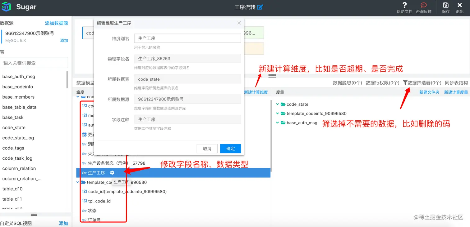 接下来需要完成以下工作:字段重命名、过滤不需要的数据(删除的码)、添加计算字段(是否超期) ,后一个可选。