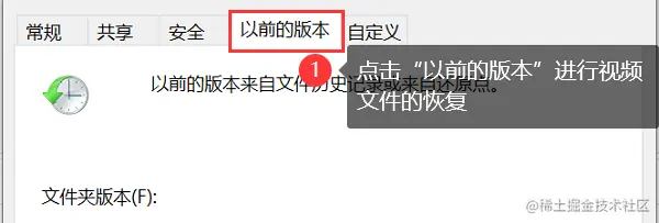 - 在包含误删视频的文件夹中,右键点击【属性】并选择 【以前的版本】 ;