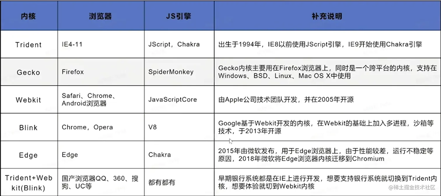 - 渲染引擎:用来解析HTML与CSS,俗称内核,比如chrome浏览器的blink,老版本的webkit