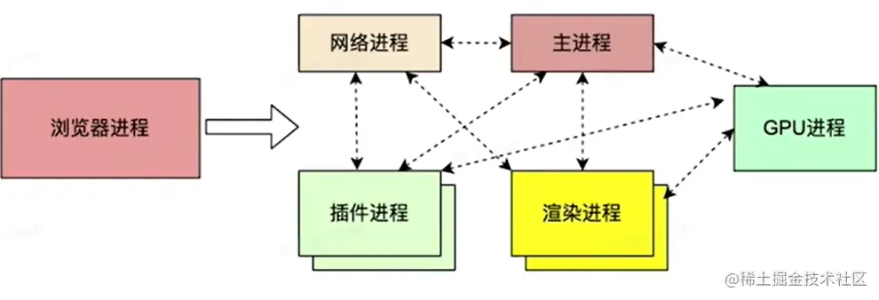 - 多进程架构:主进程、网络进程、渲染进程、GPU进程、插件进程。进程间相互隔离,各做各事