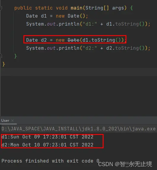 可以看到CST会被当作美国中部的时区Central Standard Time,即JVM认为你传入的时间是美国中部的时间,而当date2调用toString方法的时候,它会检测到系统的时区是中国,就会自动加14个小时(东八区与西六区的时差)