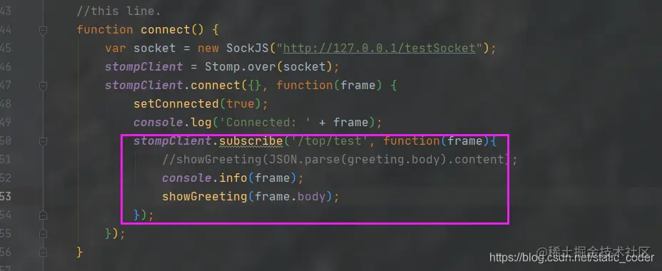 var socket = new SockJS("http://127.0.0.1/testSocket");
