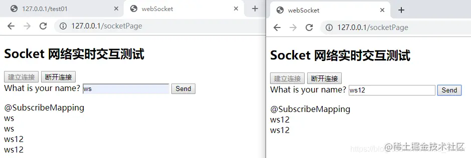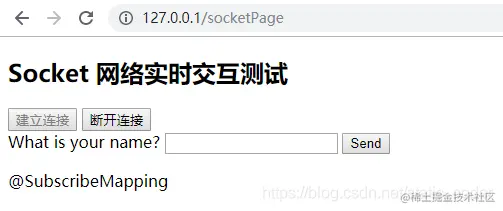- 页面打开后简历连接, 就会自动订阅信息,通过@SubscribeMapping获取服务端的消息