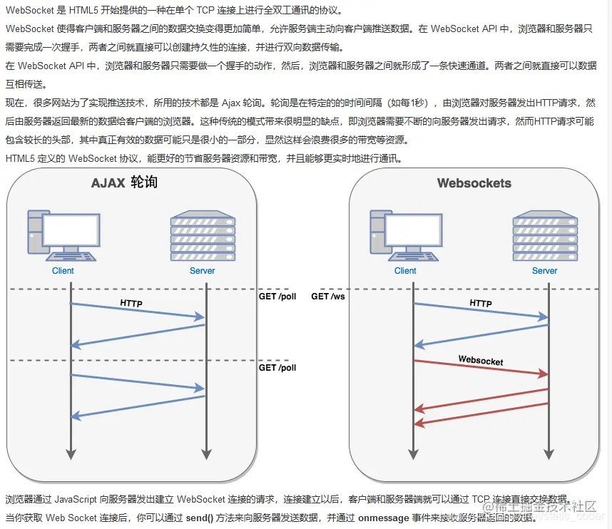在很多业务场景中,对实时数据要求比较高,我们就不能采用轮训拉取的方式来获取数据了。就可以采用websocket的长链接的形式,实时有服务端或者客户端推送数据,已达到数据的实时展示。