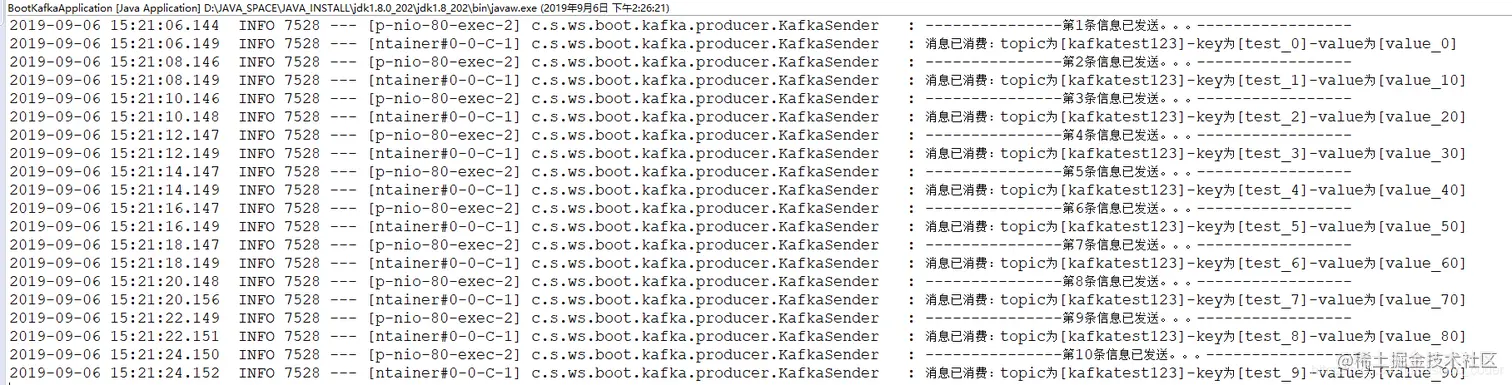 kafkaTemplate.send("kafkatest123", "test_"+i, "value_"+i*10);