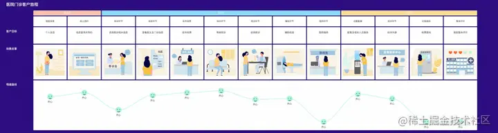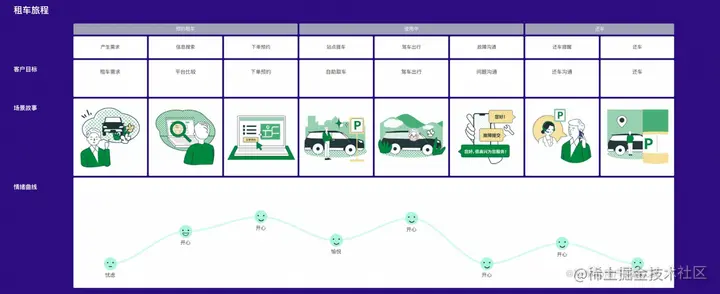 不管是服务还是产品,我们都需要事先绘制出客户旅程地图,设想所有和客户互动的节点,思考客户所有可能出现的情绪,并根据MOT设置出峰值体验。X-Map作为一款完善的旅程地图工具,支持绘制完整的地图,包括渠道、情绪曲线、场景故事、流程等等栏目。以下是一些客户旅程地图的案例:
