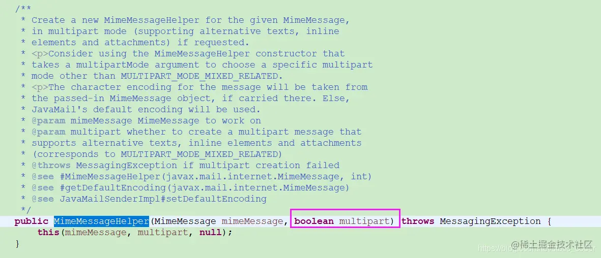 MimeMessageHelper 用于创建MIME消息的帮助类。它为HTML布局中的图像,典型邮件附件和文本内容提供支持。