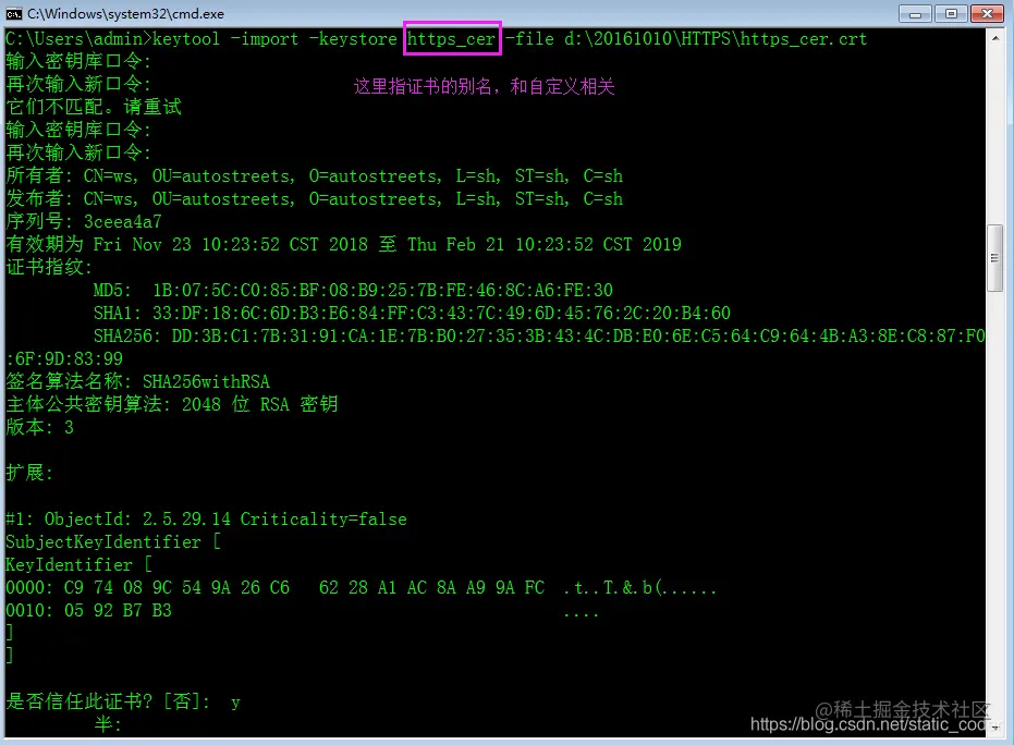 keytool -import -keystore https_cer -file d:\20161010\HTTPS\https_cer.crt