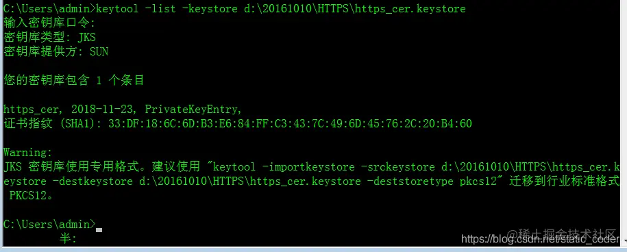 keytool -list -keystore d:\20161010\HTTPS\https_cer.keystore