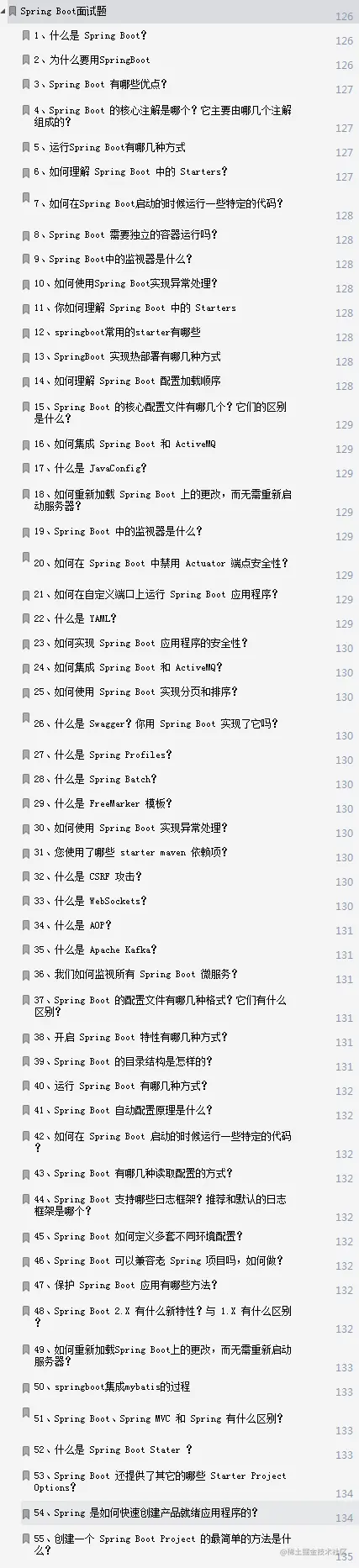 为此我专门整理了一份 《金三银四最新的Java面试宝典》 享给大家,内容涵盖:Java 基础知识点、JVM、高并发编程、spring、算法、微服务、分布式、数据库、大厂面经、技术脑图等等...接近2000多页 质量非常高!不仅有大厂面试真题还有各大技术栈讲解,不管最近要不要去面试,建议大家都保存一份!需要的大伙见文章末尾领取~