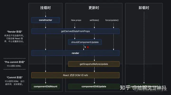 有更新在render阶段的 constructor 中 init State,但有更新可以在此方法时 setState。