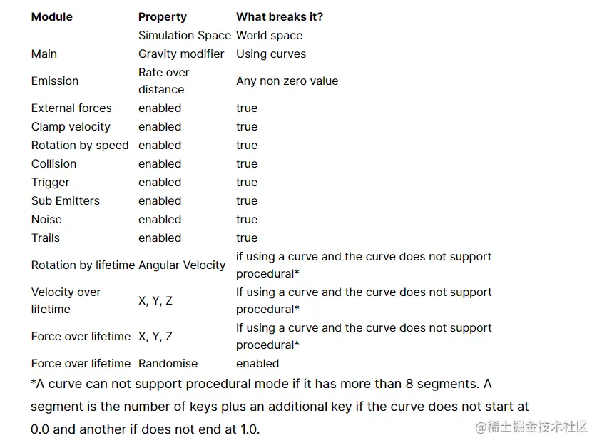 本质原因是World或者其它的Module会影响粒子系统的可预测性,这样会导致没法Culling。影响因素如下: