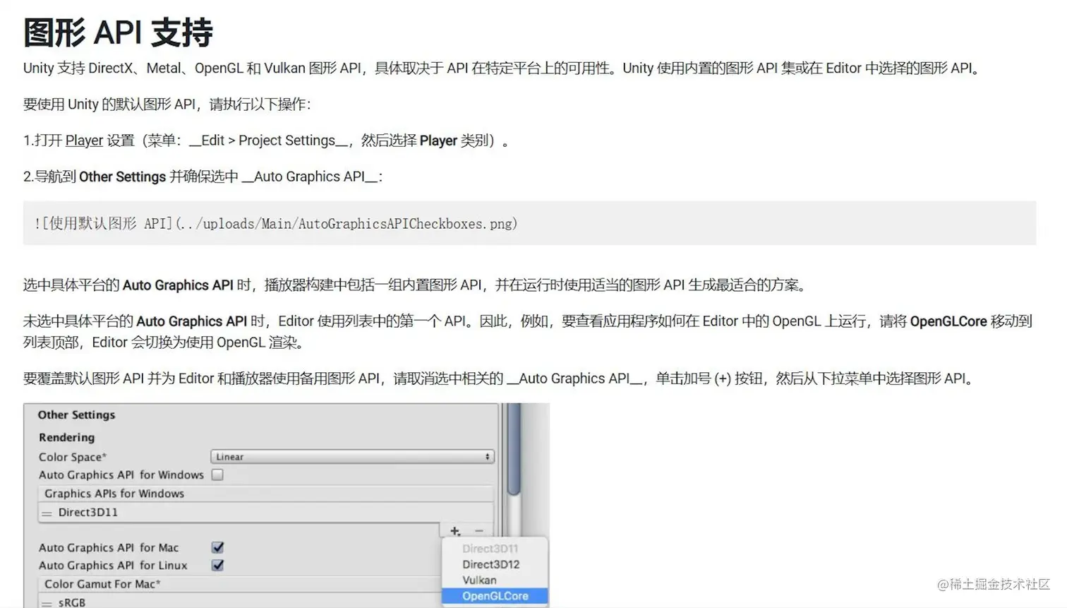 forum.unity.com/threads/how…(2)如果是确认了上面闪屏的问题是Vulkan导致的,那可以去掉自动API,把OpenGL设置成首选项,当然也可以直接去掉Vulkan。目前国内大部分中高端手机,2017年以后安卓7以上都是支持Vulkan的。