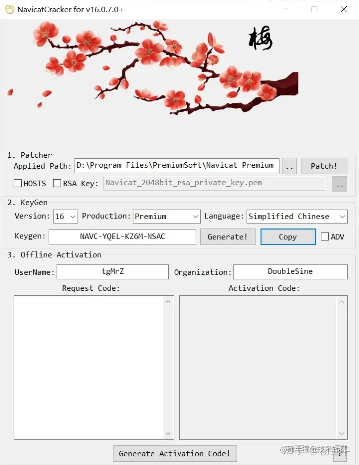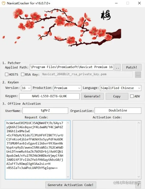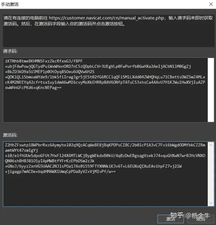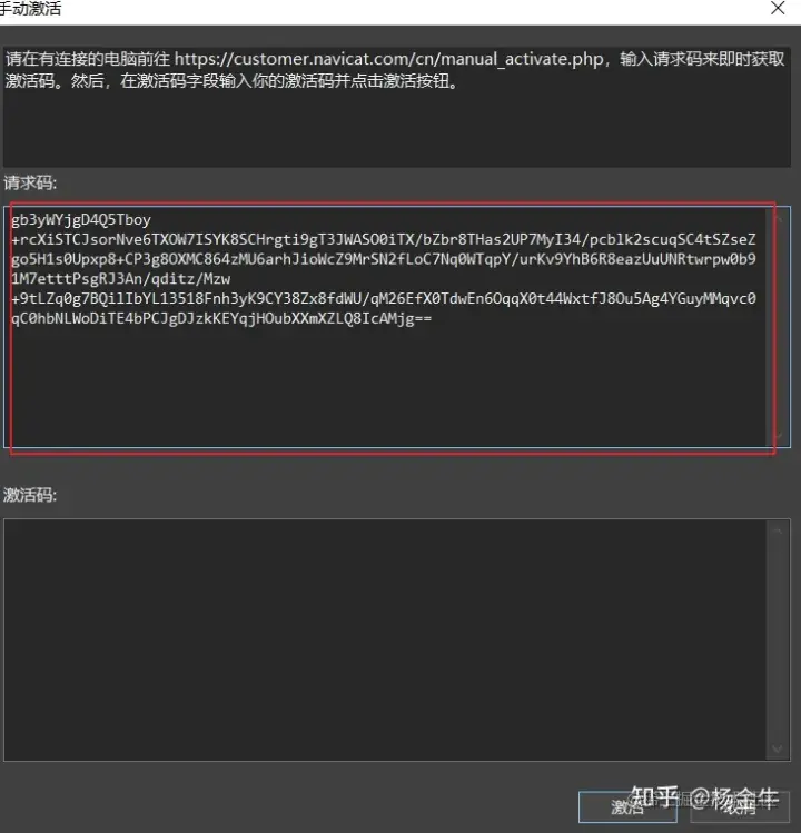 将 Navicat 给的请求码复制到注册机 Request Code 中