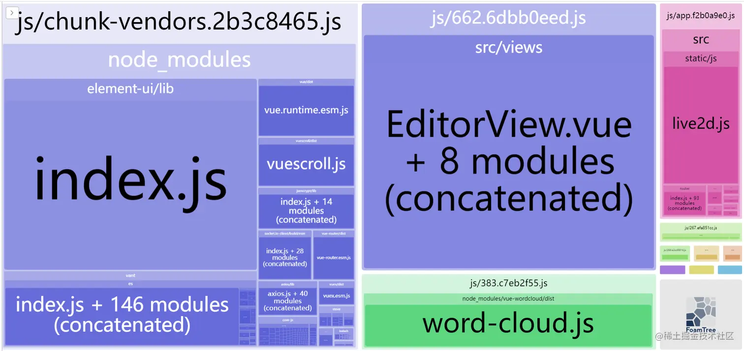 可以看到,在打包的文件中,占据最大比例的是这两个组件库,我们可以使用按需加载来减小 按需加载按照官方文档来就行,需要注意配置bebel.config.js