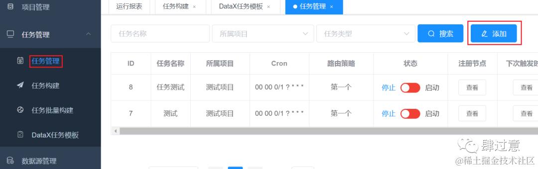 选择添加,任务类型选择Datax任务,将上一步的json复制进去,点击确认
