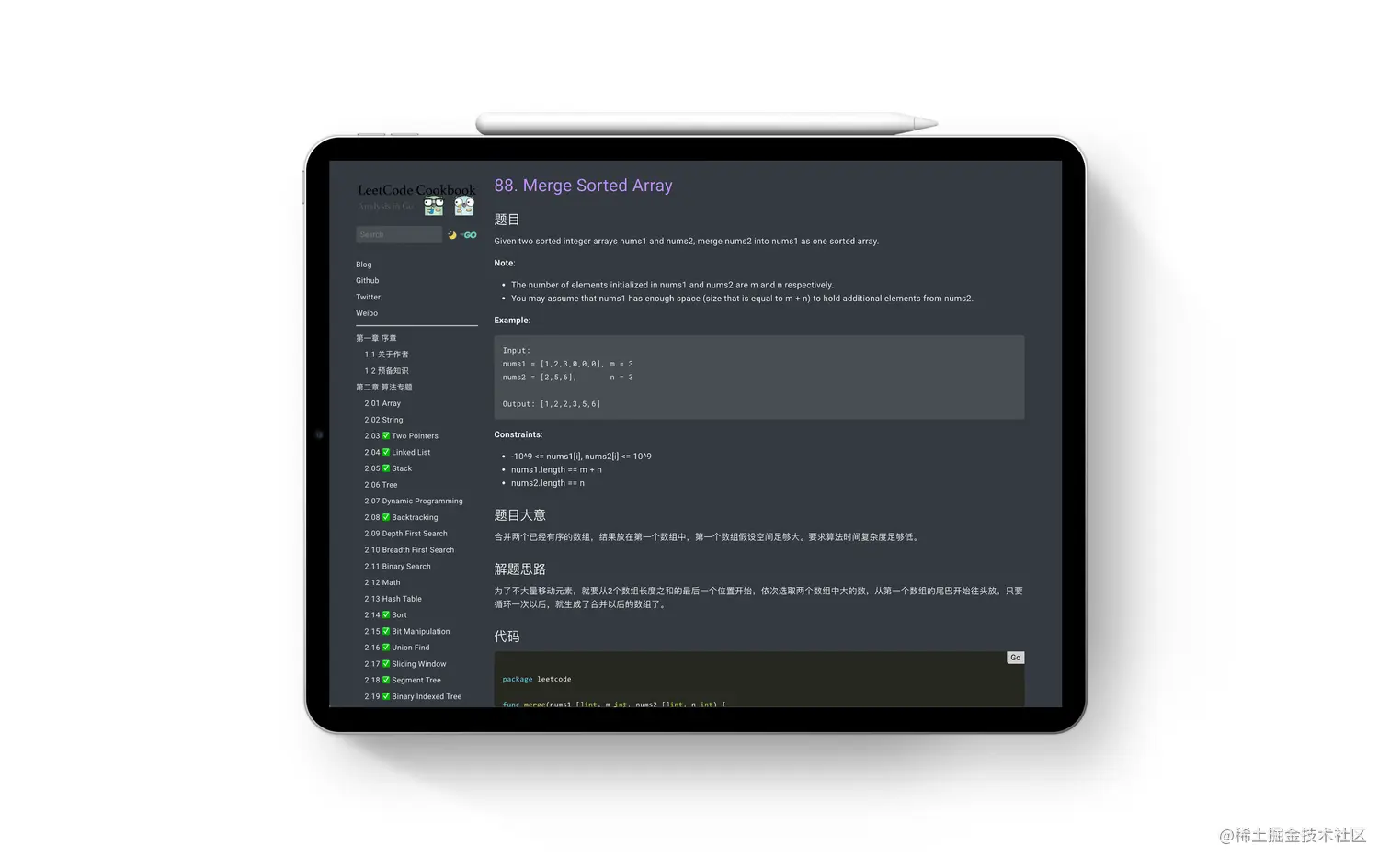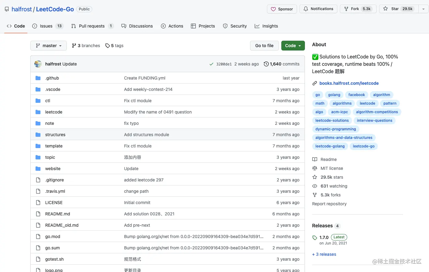 笔者强烈推荐一个 Github 开源项目 LeetCode-Go,你不仅可以把他当做一本开源算法书,也可以当做一个学习和交流的平台。