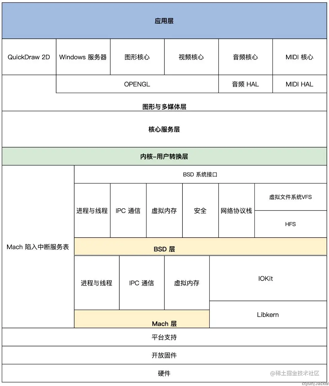 Linux 性能良好,结构异常复杂,不利于问题的排查和功能的扩展,而 Darwin-XNU 和 Windows 结构良好,层面分明,利于功能扩展,不容易产生问题且性能稳定。