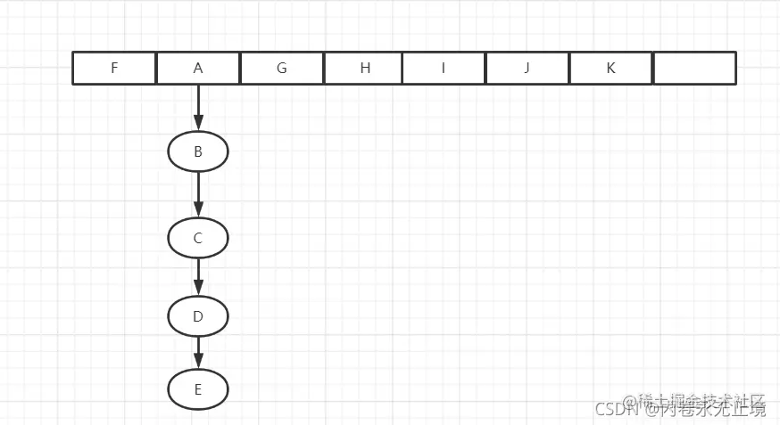 这里以图示举例(插入完k后 下标为1的链表扩容流程 没有变红黑树)