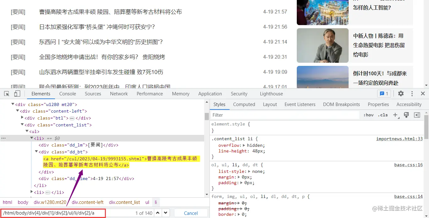 我们以实际的案例,来具体了解学习其功能。我们在这里重点讲解其两种方式。一个是XPATH,一个是CSS。我们以某网为例,获取其新闻标题。
