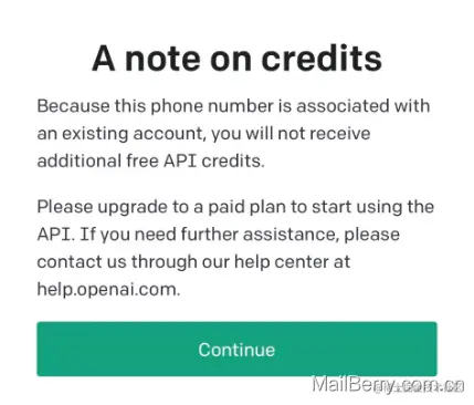 由于这个电话号码已经与现有的账户关联,您将不会收到额外的免费 API 信用额度。