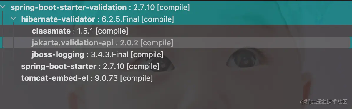 大家可以看到spring-boot-starter-validation 中依赖的包是 jakarta.validation-api,其命名空间属于jakarta。jakarta.validation-api 实现的规范依旧是JSR380,熟悉的小伙伴可能知道其实以前用的是 javax.validation-api。可是为什么现在会是jakarta.validation-api 呢,而不是 javax.validation-api?这中间其实涉及到了太多的商业上的博弈。有兴趣的大家可以自己去了解下,有时间单独出一篇介绍。