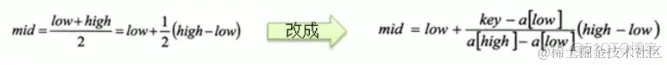 - int midindex = low +(high -low)*(key -arr[low])/(arr[high]-arr[low])
