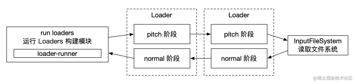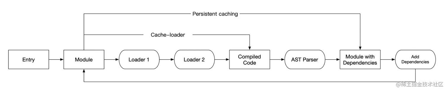 loader 运行类似于 Express/Koa 的中间件机制,每一个 Loader 分为 pitch 和 normal 两个阶段,cache-loader 利用这一点,在 pitch 阶段进行缓存检测,如果检测到缓存可用则直接返回。无缓存或缓存不可用则继续运行后续流程,直到 normal 阶段生成缓存写入文件系统。