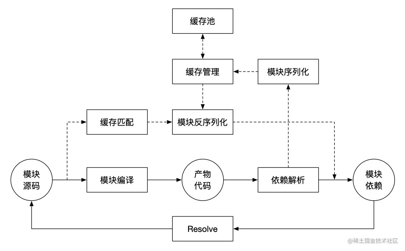 - 缓存管理:将缓存池桥接到 Webpack 构建的生命周期 hooks 上