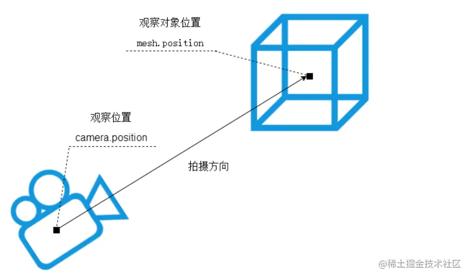 camera.lookAt(mesh.position);//指向mesh对应的位置