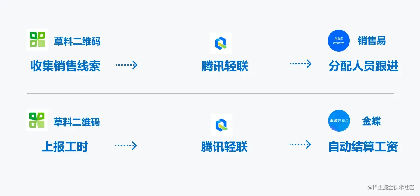 腾讯轻联是腾讯云推出的“应用连接器” ,无需编程,实现多应用的连接。草料二维码作为首批入驻腾讯轻联的合作伙伴和腾讯团队进行了深度协同,提供给用户以下能力: