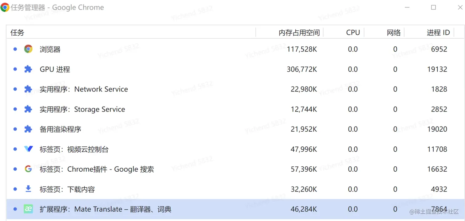| 插件进程 | 控制网站运行的插件,比如 flash、ModHeader 等 |