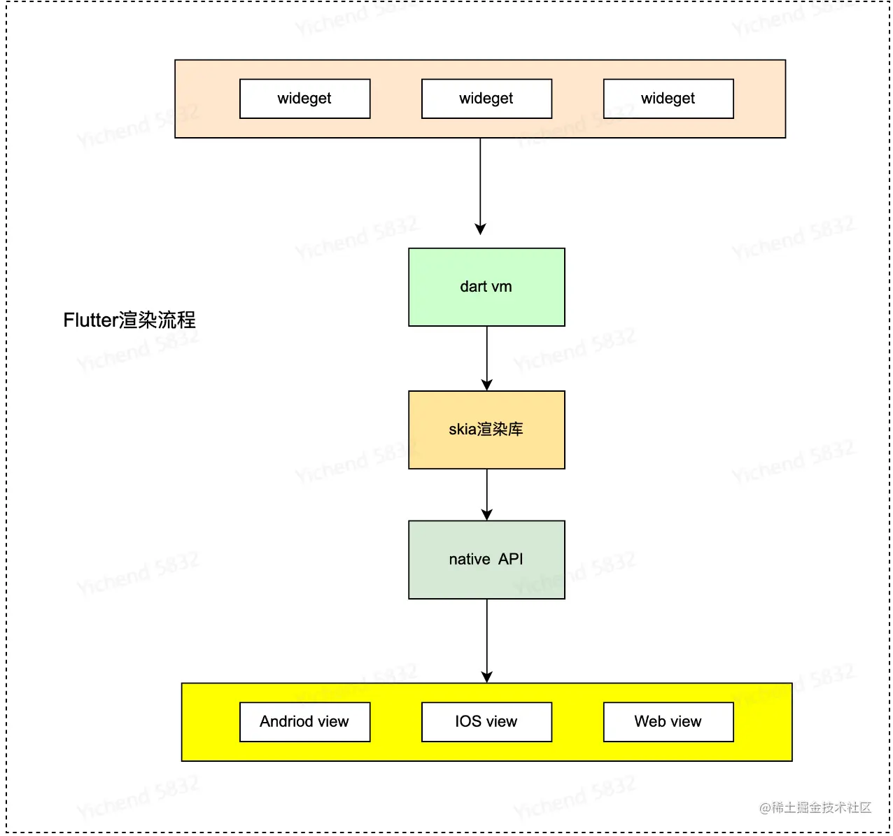 Flutter 使用 Skia 图形库进行 UI 渲染。Skia 是一种高性能的 2D 图形渲染引擎,用于绘制图形和文本。由于 Flutter 直接使用 Skia 进行渲染,它无需依赖于原生 UI 组件,可以实现统一的跨平台 UI 渲染。这使得 Flutter 应用具有高度的可定制性,同时还保持了流畅的性能和优美的视觉效果。