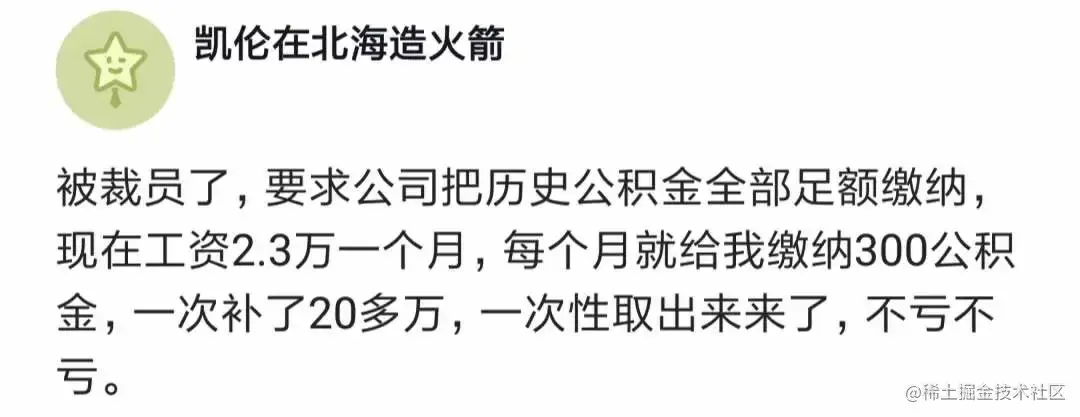 被裁员了,要求公司把历史公积金全部足额缴纳,现在月薪2.3万,但公司每个月只给自己缴纳300元公积金,结果一次补了二十多万,一次性取出来了,不亏不亏!