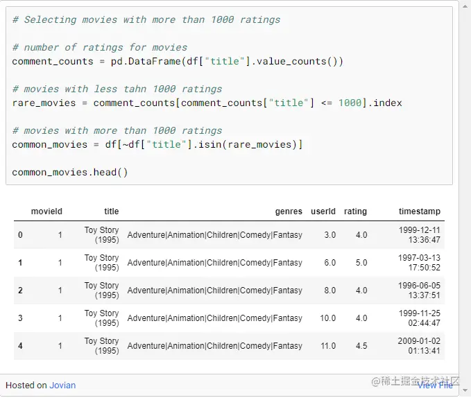 在这个协同过滤的最终项目中,将使用在基于项目和基于用户的协同过滤中使用的相同数据集。这是检查数据集过程的项目的完整代码。