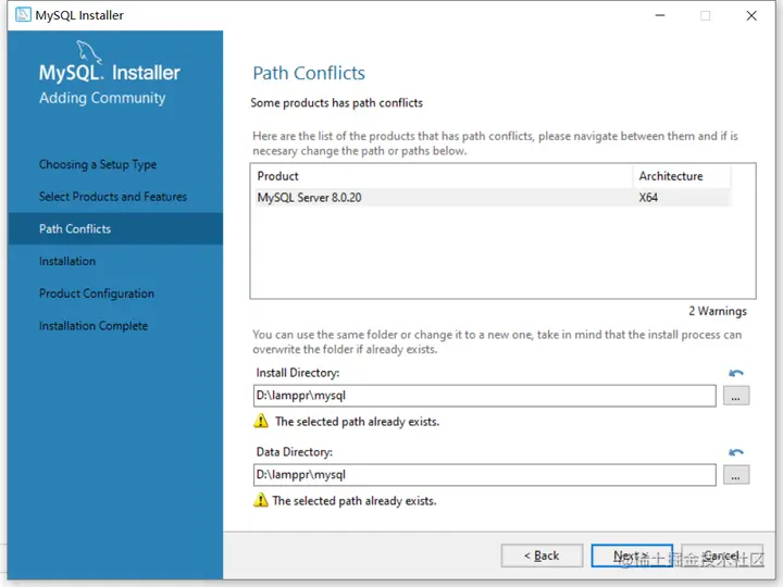 MySQL服务和数据目录都放在同一个地址下了,然后OK,OK, Next就行了