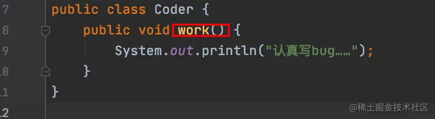 这里的super指的是Coder类,所以super.work();实际执行的是Coder类的work()方法: