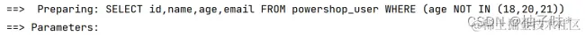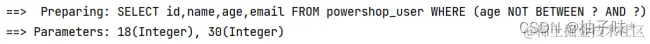 | @Test void notInSql2(){ ** //1. **创建 QueryWrapper 对象 ****LambdaQueryWrapper lambdaQueryWrapper = new LambdaQueryWrapper<>(); ** //2. **设置条件,指定字段名称和值 ****lambdaQueryWrapper.notInSql(User::getAge,"select age from powershop_user where age > 20"); ** //3. **使用条件完成查询 ****List users = userMapper.selectList(lambdaQueryWrapper); System.out.println(users); } |