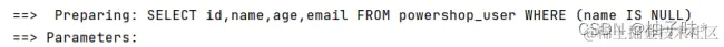 | @Test void isNull(){ ** //1. **创建 QueryWrapper 对象 ****LambdaQueryWrapper lambdaQueryWrapper = new LambdaQueryWrapper<>(); ** //2. **设置条件,指定字段名称 ****lambdaQueryWrapper.isNull(User::getName); ** //3. **使用条件完成查询 ****List users = userMapper.selectList(lambdaQueryWrapper); System.out.println(users); } |
