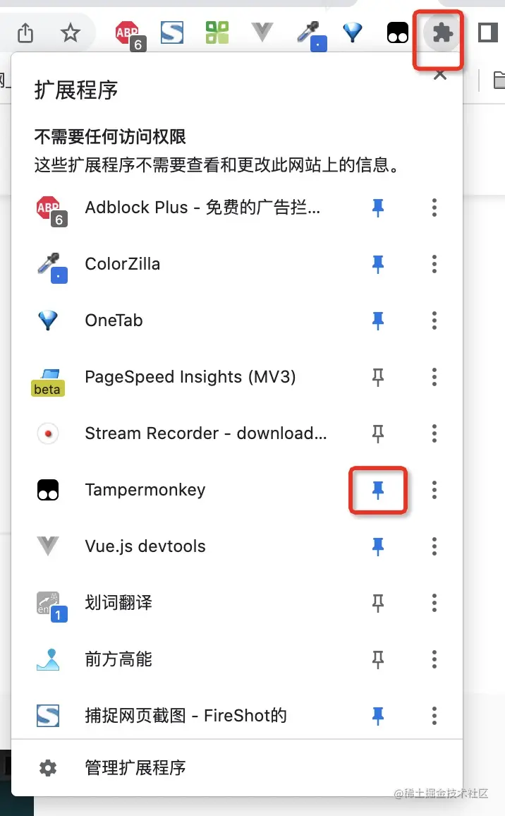 (4)如果没有看到的话,按下图将插件固定到导航栏右侧;