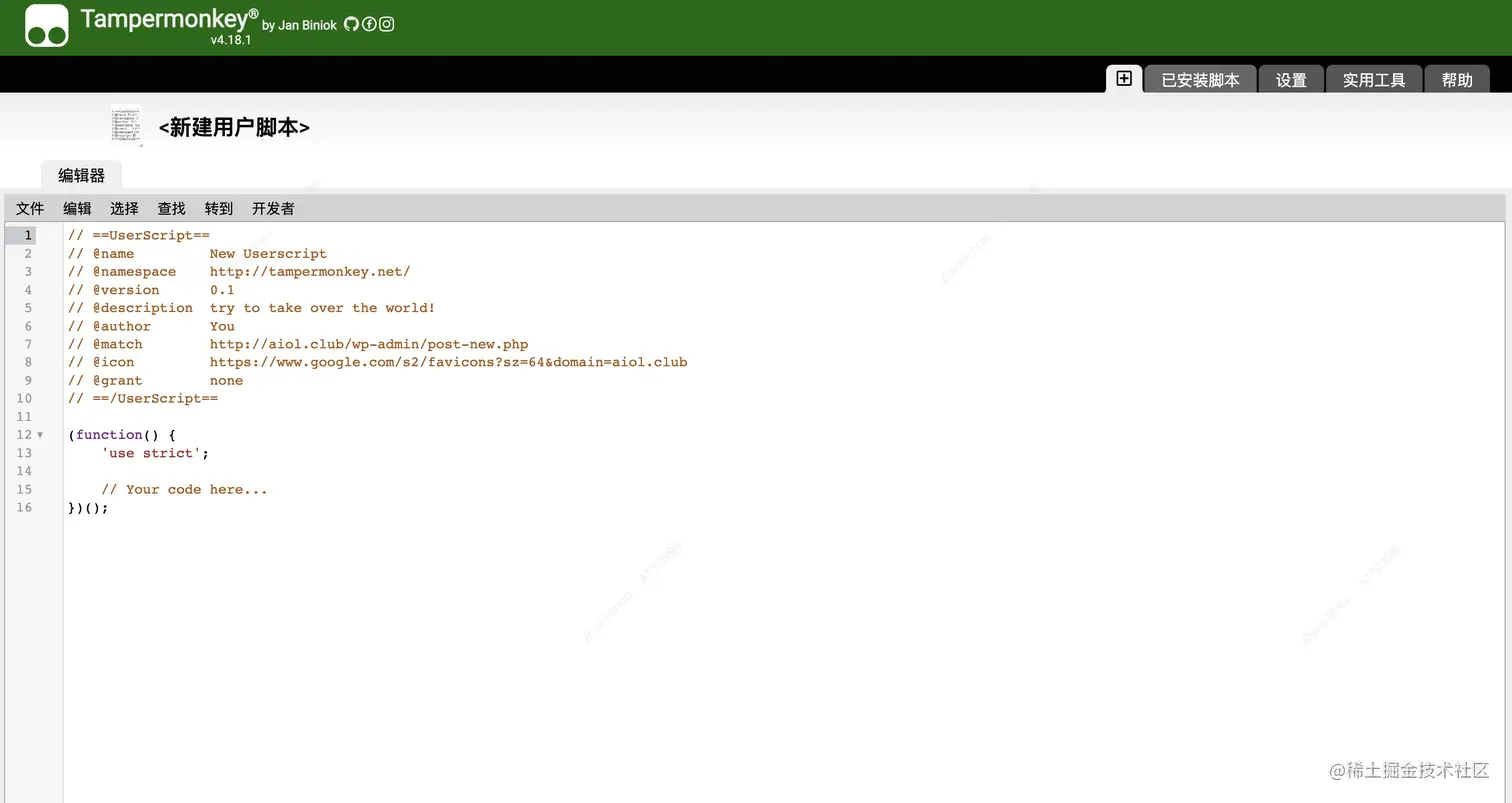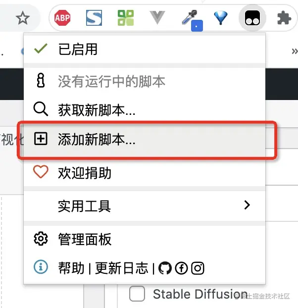 (1)单击导航栏旁边的油猴图标,在点击【添加新脚本】