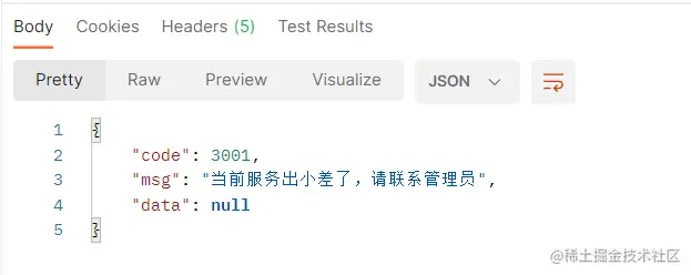 此时我们再去请求2、断言处理中的接口,这种提示就非常友好,不会给用户展示看不懂的一连串异常信息,还能让开发者及时定位到问题去处理。